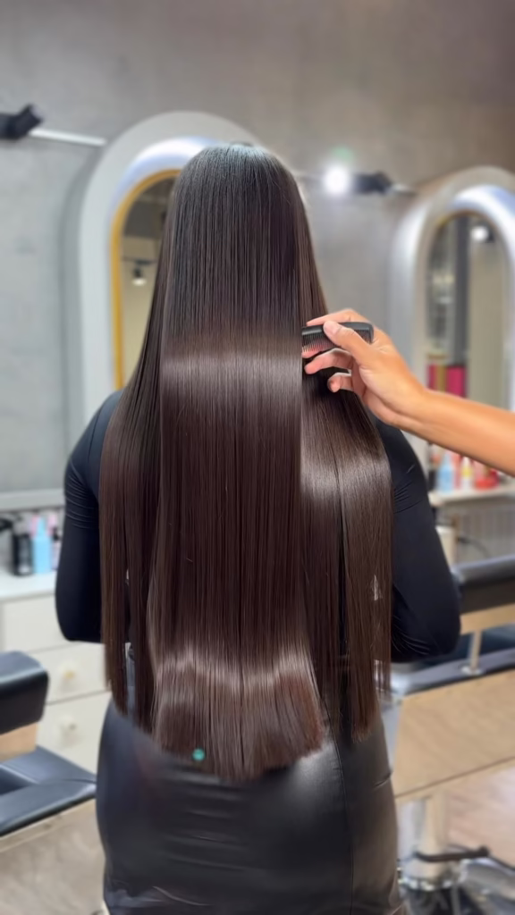 Look for images of “liquid hair” that looks like silk or a perfectly straight fringe.