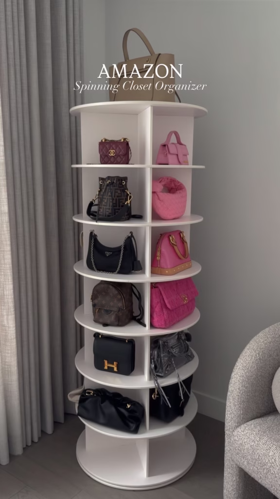 This revolving tower is a game changer for maximizing corner space in your closet, truly elite organization.