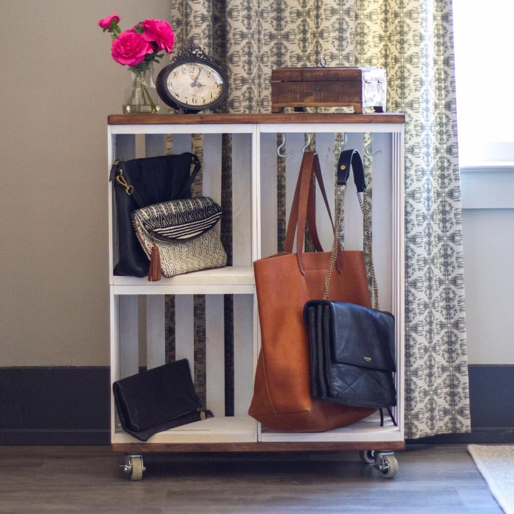 Seriously, repurposing a cute rolling cart for your bags is such a genius aesthetic move.