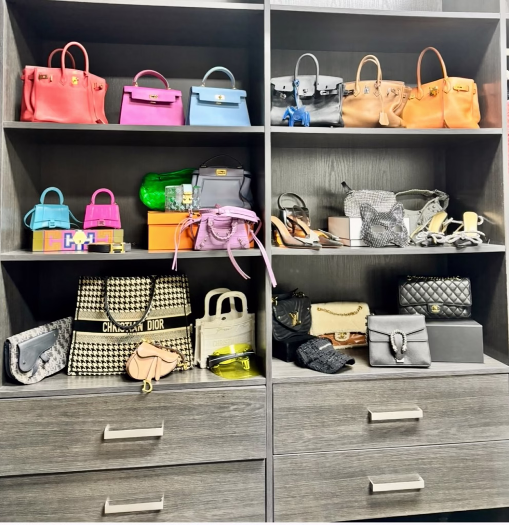 This setup is pure genius for maximizing vertical space; it keeps your bags off the floor, thank goodness.