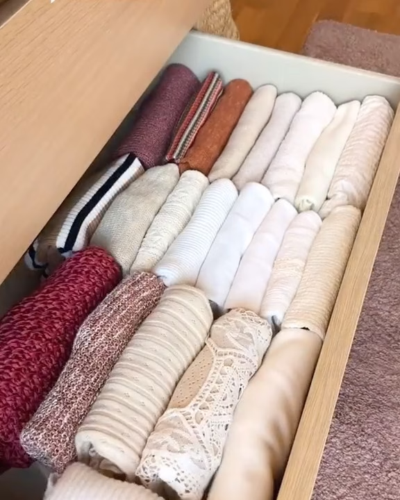 Look at this perfect folding technique, sometimes called the filing method. It’s totally aesthetic, making every little outfit visible so you grab what you need ASAP.