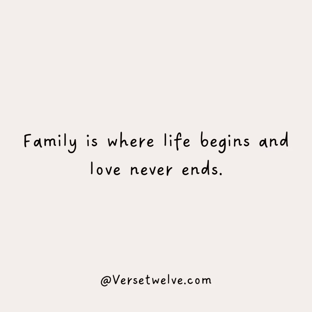 - Family is where life begins and love never ends.