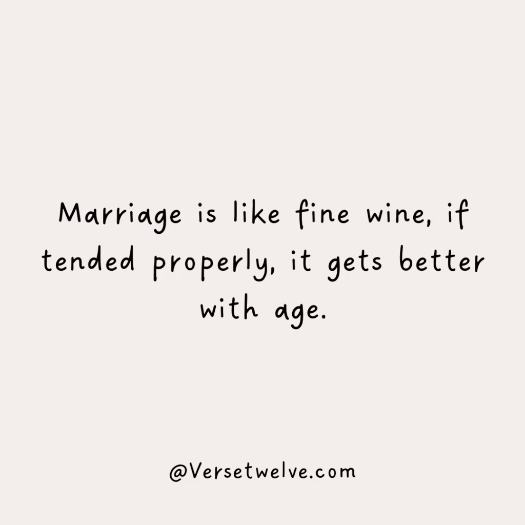 - Marriage is like fine wine, if tended properly, it gets better with age.