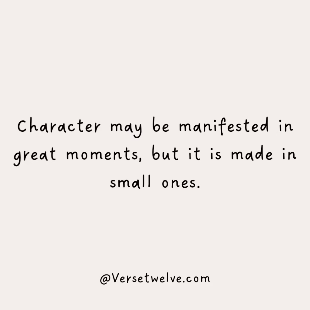 - Character may be manifested in great moments, but it is made in small ones.